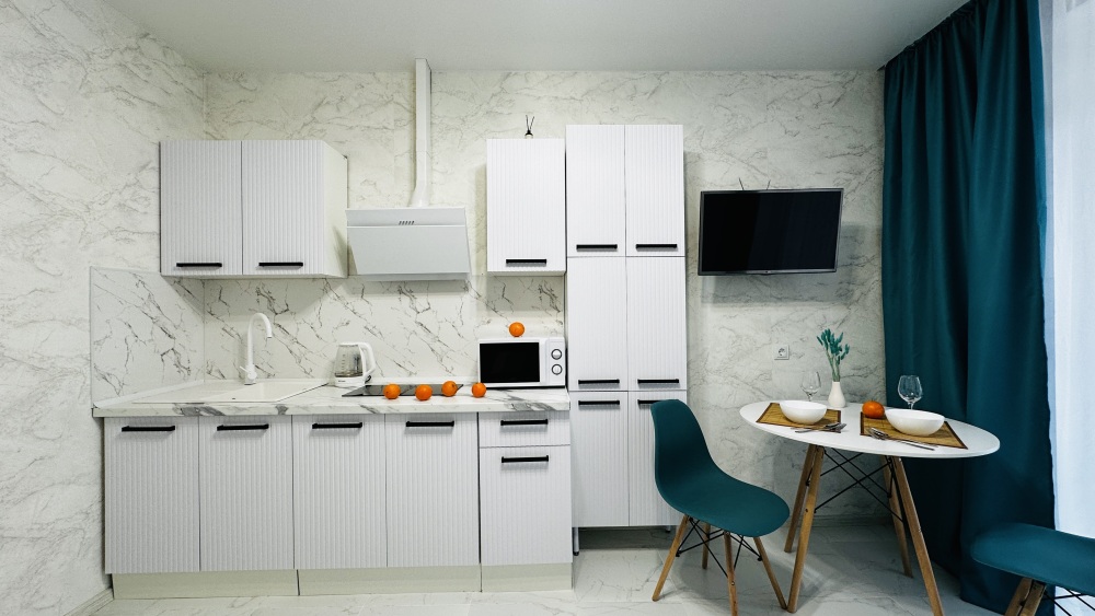 - Бытовая техника (телевизор smart тв, стиральная машина, холодильник, свч печь, индукционная плита, утюг, фен) гладильная доска, сушилка.