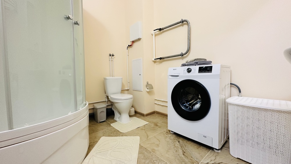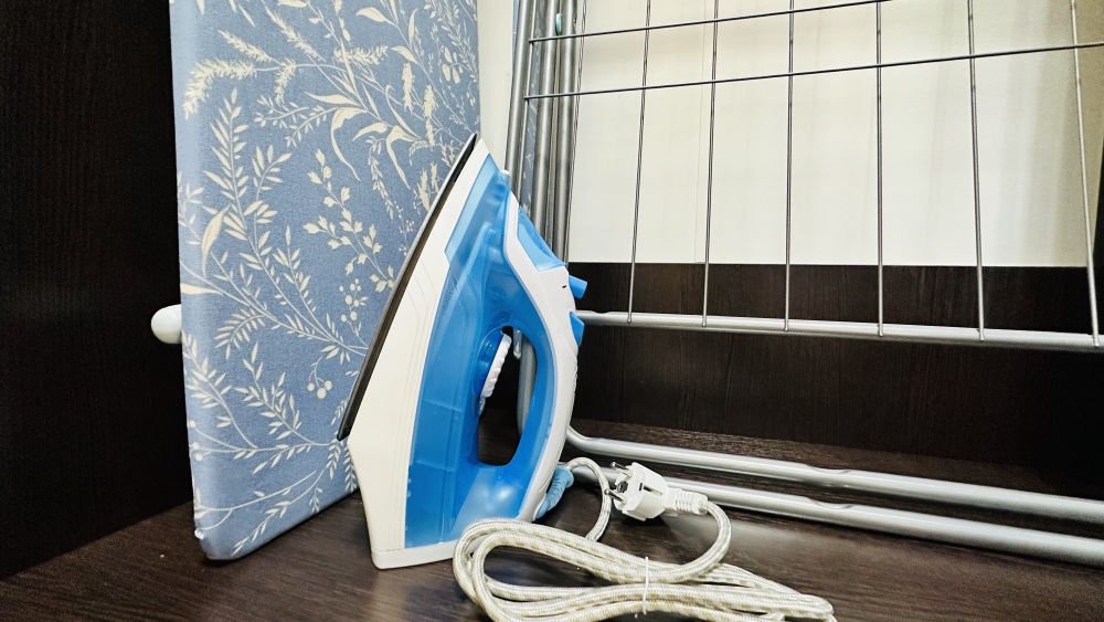- Бытовая техника (телевизор smart тв, стиральная машина, холодильник, свч печь, индукционная плита, утюг, фен) гладильная доска, сушилка.