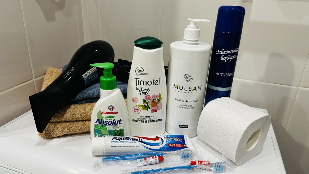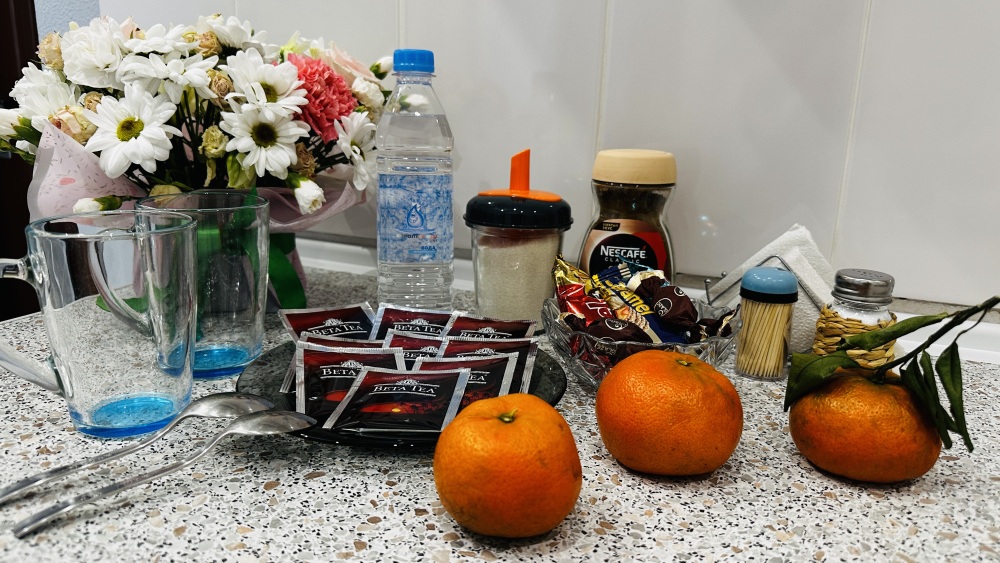 Приветственный комплимент в виде чая, кофе, конфет, а также предметы первой необходимости (шампунь, гель для душа, зубная паста, туалетная бумага) поднимут вам настроение.
