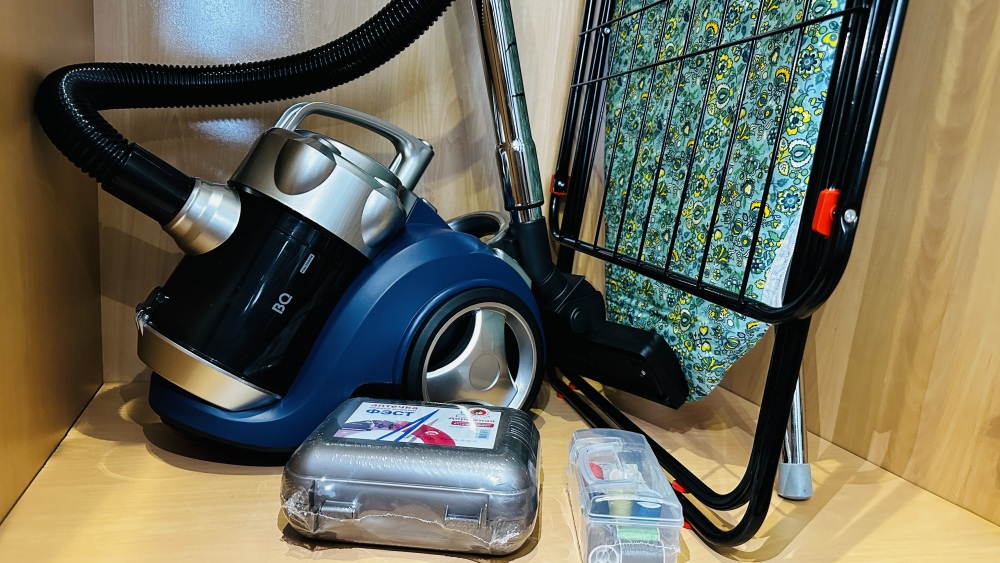 - Бытовая техника (телевизор, стиральная машина, холодильник, свч печь, электрическая плита, утюг, фен, гладильная доска, сушилка.