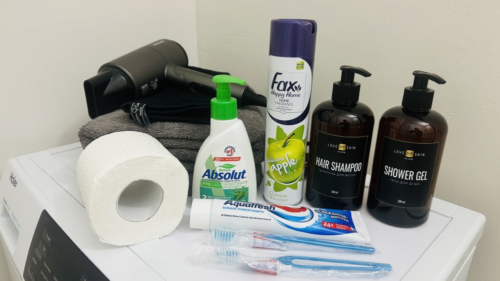 Приветственный комплимент в виде чая, кофе, конфет, а так же предметы первой необходимости (шампунь, гель для душа, зубная паста, туалетная бумага) поднимут вам настроение.