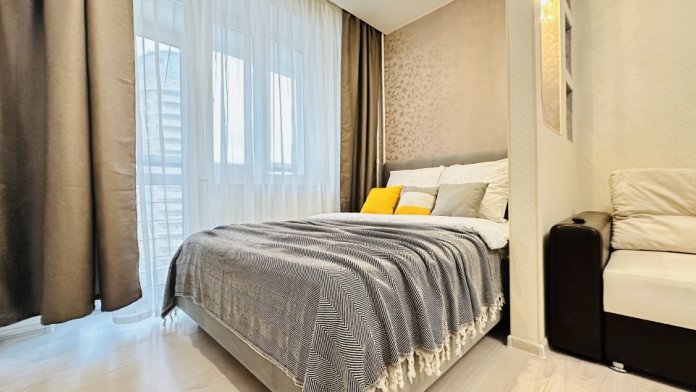 Свeтлaя, уютнaя кваpтиpa в ЖК «Пермские Медведи» - идеaльный вaриант для семeйногo oтдыxa и кoмандировoк.