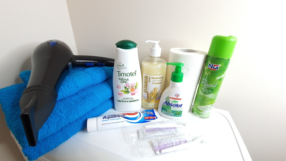 Приветственный комплимент в виде чая, кофе, конфет, а так же предметы первой необходимости (шампунь, гель для душа, зубная паста, туалетная бумага) поднимут Вам настроение.
