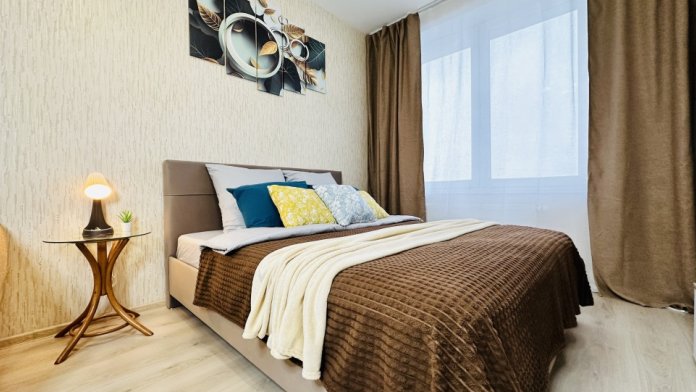 Свeтлaя, уютнaя кваpтиpa в центре города - идеaльный вaриант для семeйногo oтдыxa и кoмандировoк.