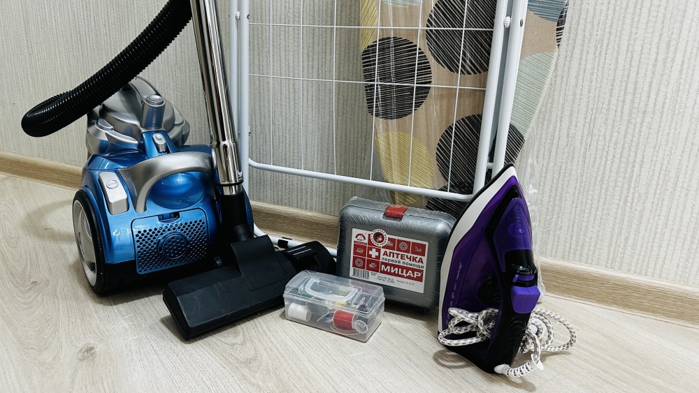 - Бытовая техника (телевизор, стиральная машина, холодильник, свч печь, индукционная плита, утюг, фен) гладильная доска, сушилка.