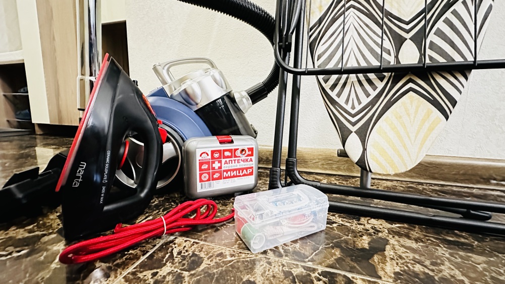 - Бытовая техника (телевизор, стиральная машина, холодильник, свч печь, индукционная плита, утюг, фен) гладильная доска, сушилка.
