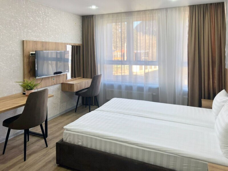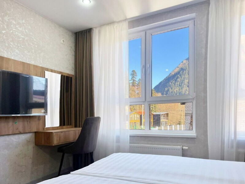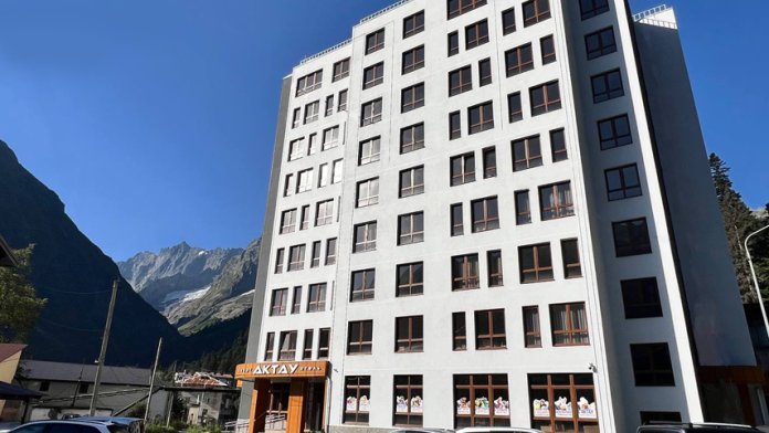 Апарт-отель «АКТАУ» расположен всего в 10 минутах неспешной прогулки до станций канатной дороги, это 650 метров по центральным улочкам Домбая.