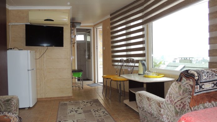 Отдельно стоящая общая кухня на два этажа домика оборудована всем необходимым для комфортного отдыха. Бесплатный доступ в Интернет на всей территории.
