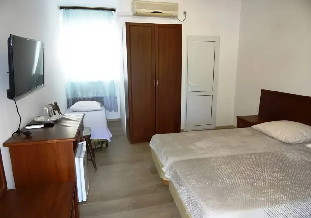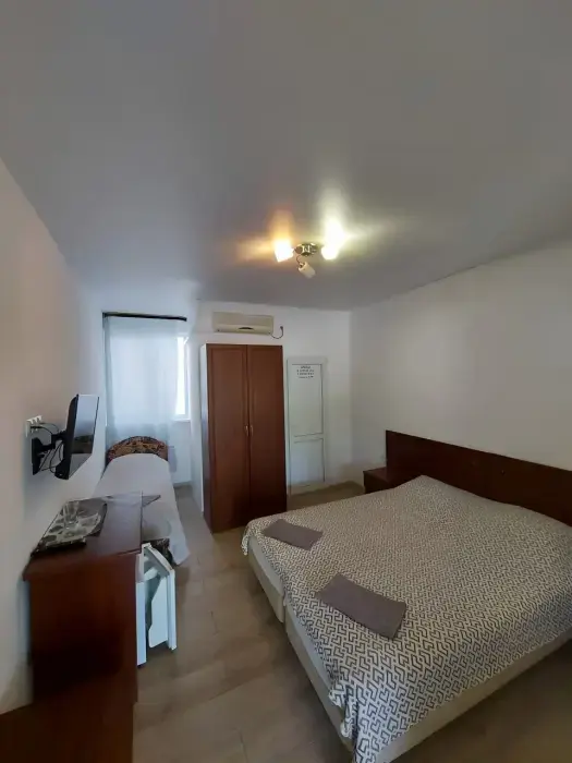 Трехместный номер стандарт. Душ и туалет в номере. Телевизор, кондиционер, мини холодильник. бесплатный Wi-fi. Постельное белье, набор полотенец, туалетные принадлежности.