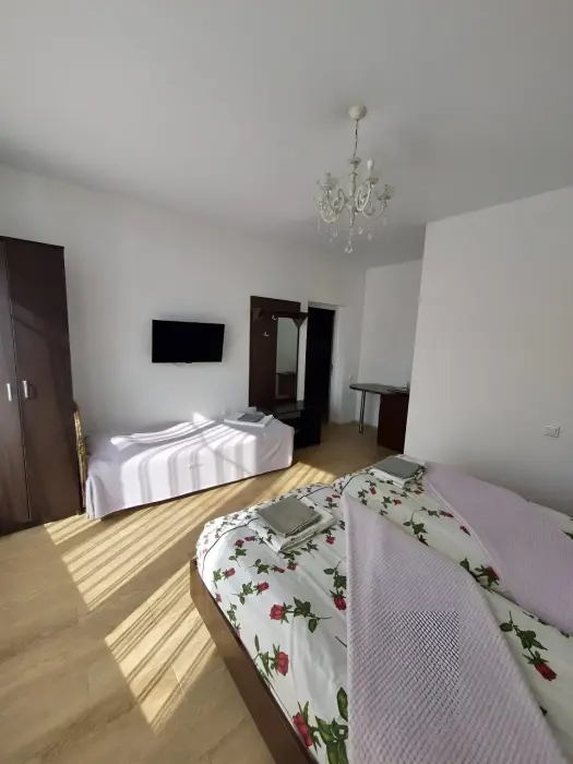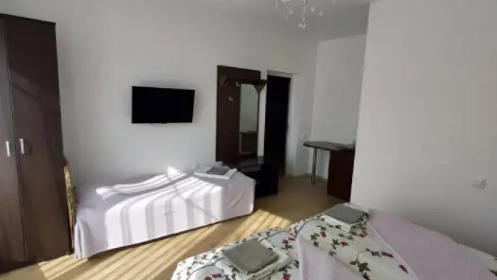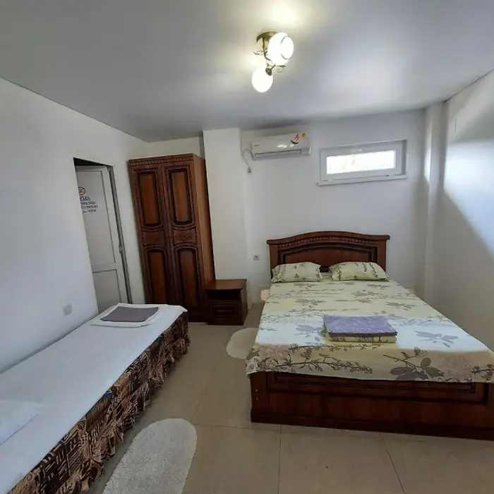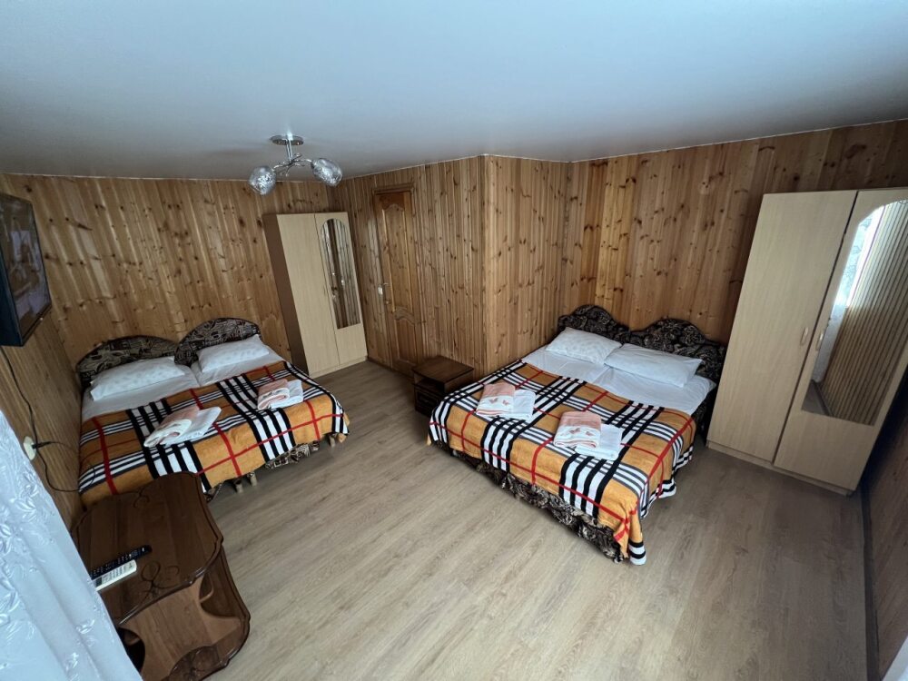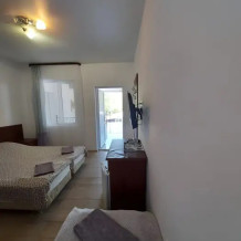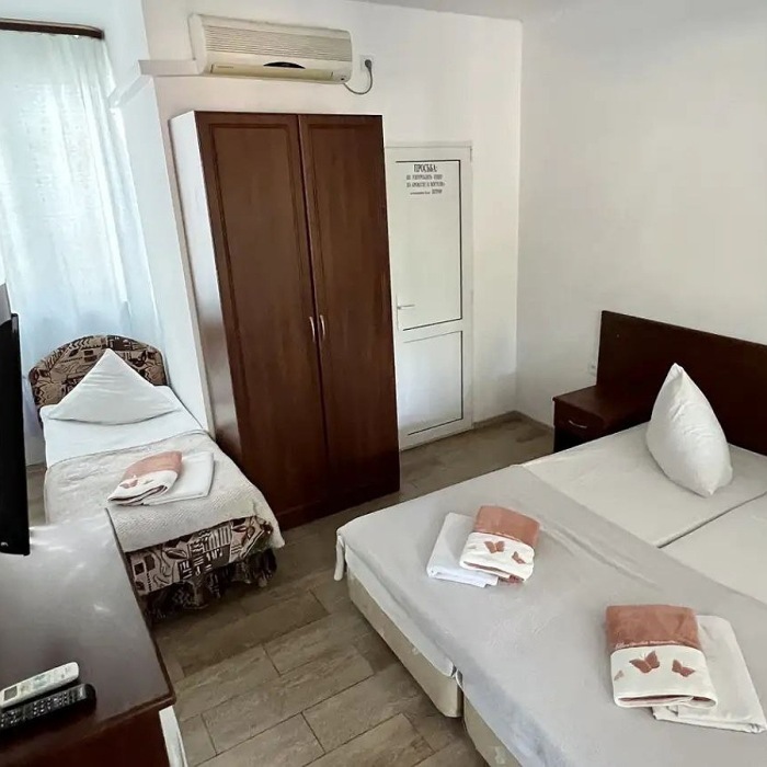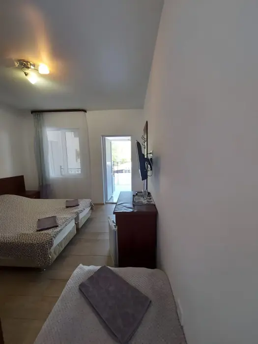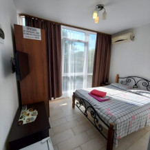 Трехместный номер комфорт. Расположен на втором этаже. Телевизор, холодильник мини, кондиционер. бесплатный Wi-fi. Душ и туалет в номере. Постельное белье, набор полотенец, душевые принадлежности.