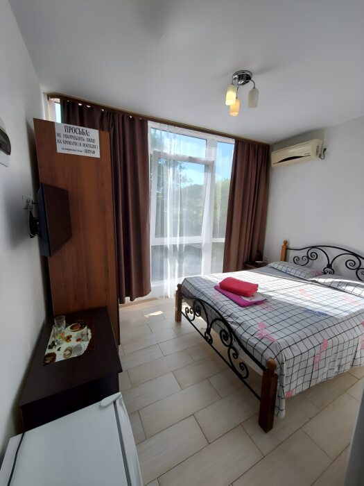 Комфорт двухместный. В номере телевизор, мини холодильник, кондиционер. Двухспальная кровать, шкаф для одежды, тумбочки. Wi-fi