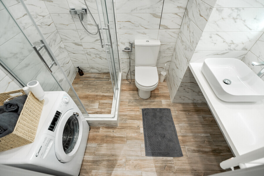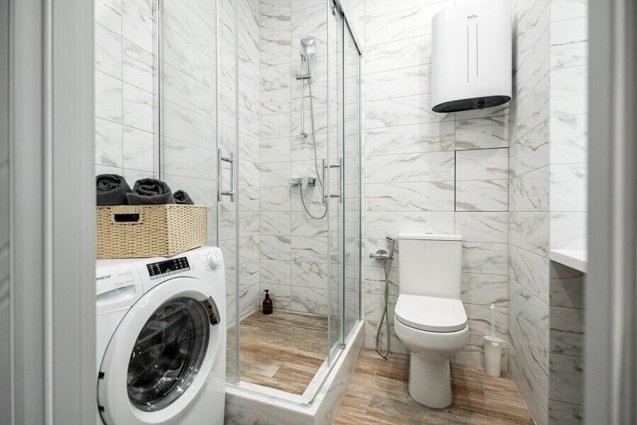 - Душевая кабина, необходимые бытовые приборы: фен, гладильная доска и утюг.
