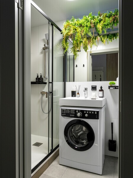 - Душевая кабина, необходимые бытовые приборы: фен, гладильная доска и утюг.