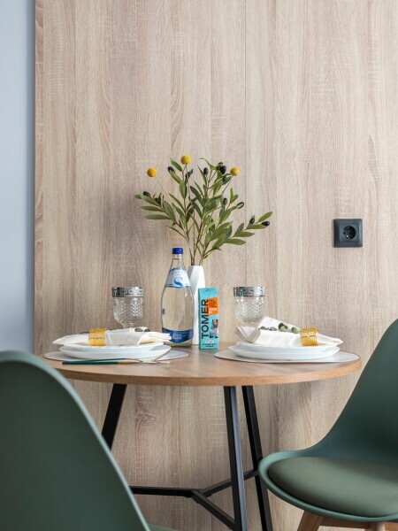 Каждая студия оформлена в неповторимом греческом стиле. Особенность интерьера — роспись ручной работы, посвященная одному из богов Олимпа. Это не просто место для проживания, это погружение в атмосферу мифов и эстетики.