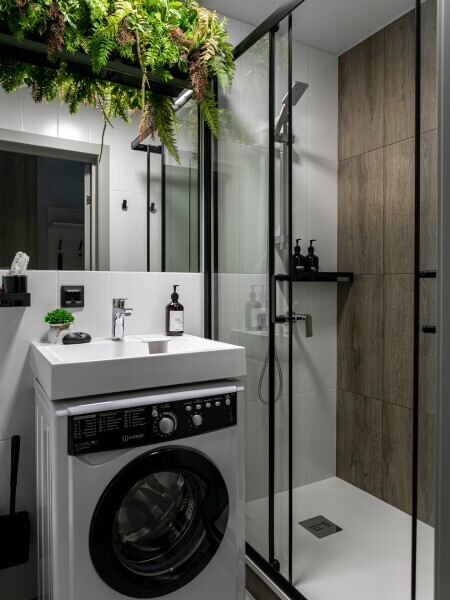 - Душевая кабина, необходимые бытовые приборы: фен, гладильная доска и утюг.