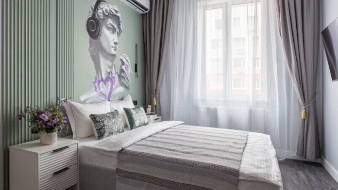 Каждая студия оформлена в неповторимом греческом стиле. Особенность интерьера — роспись ручной работы, посвященная одному из богов Олимпа. Это не просто место для проживания, это погружение в атмосферу мифов и эстетики.
