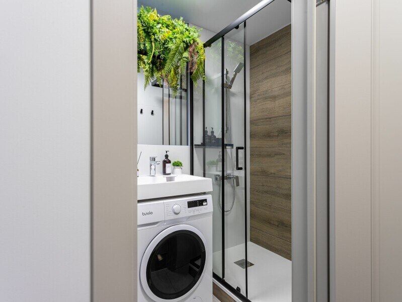 - Душевая кабина, необходимые бытовые приборы: фен, гладильная доска и утюг.