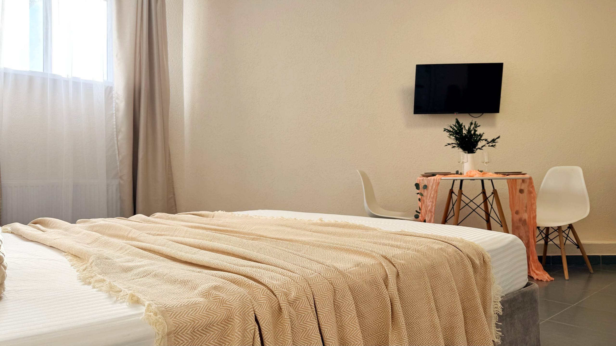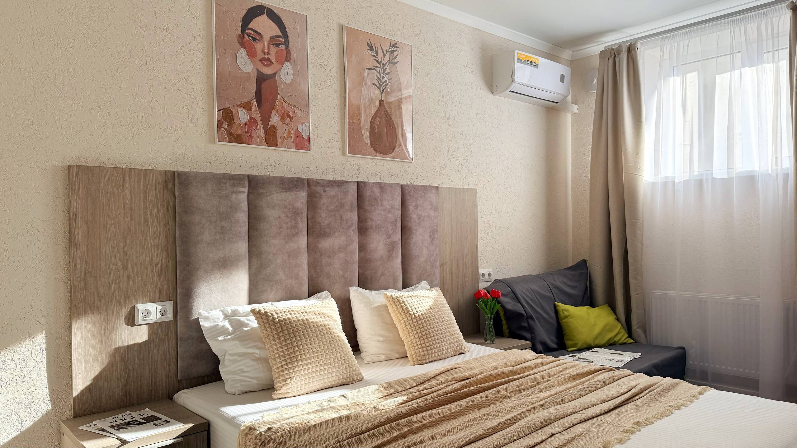 - Уютная двуспальная кровать 160×200 с качественным матрасом и премиум-бельем.