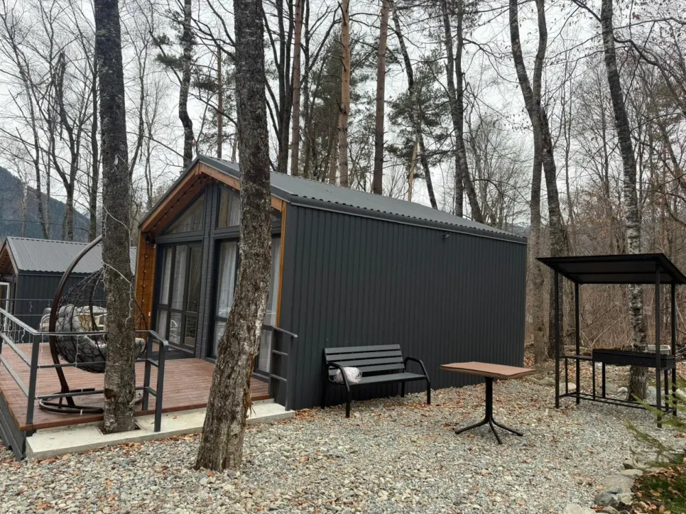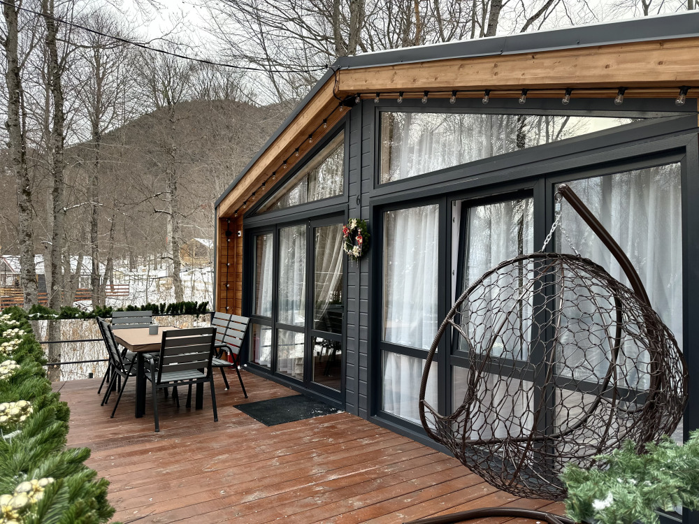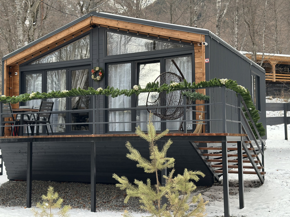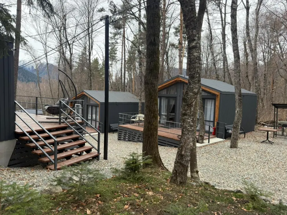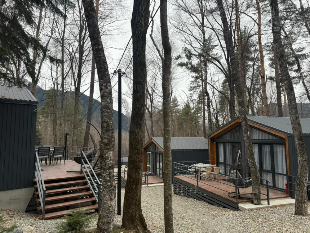 База отдыха «Шёпот леса» в с. Архыз предлагает домики с видом на горы и лес: