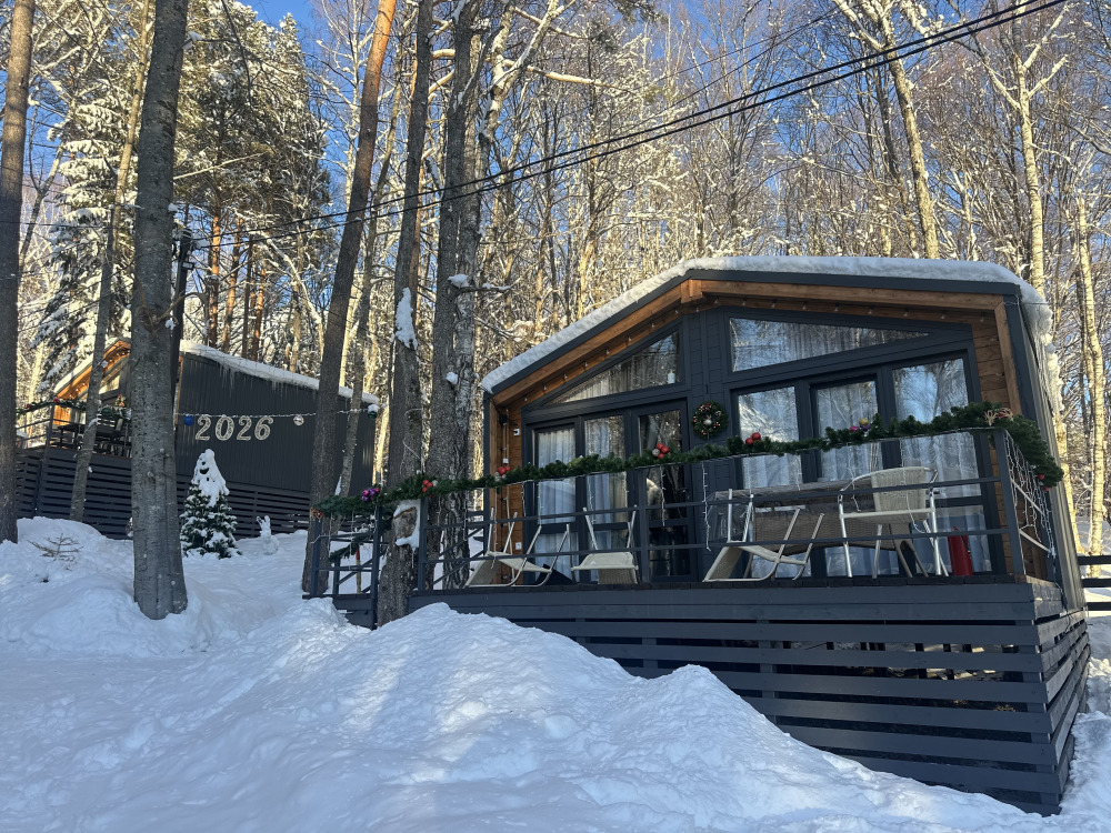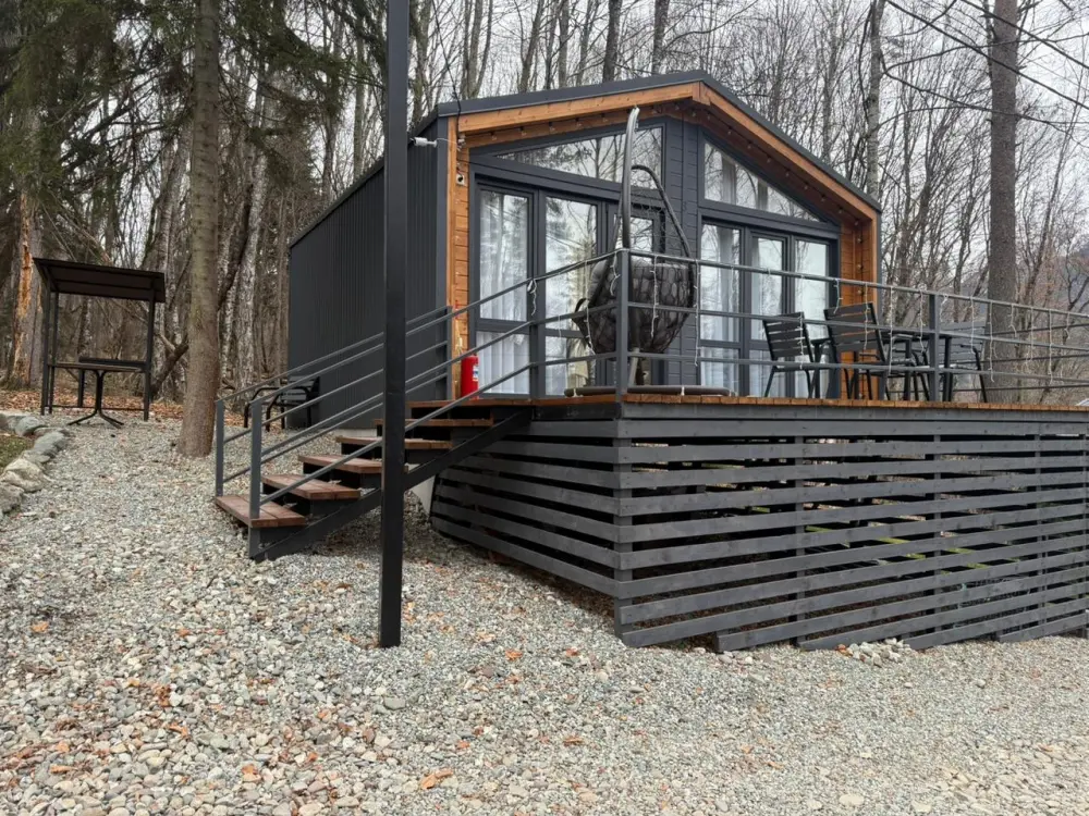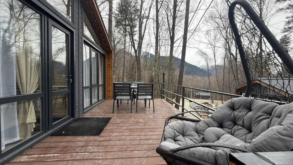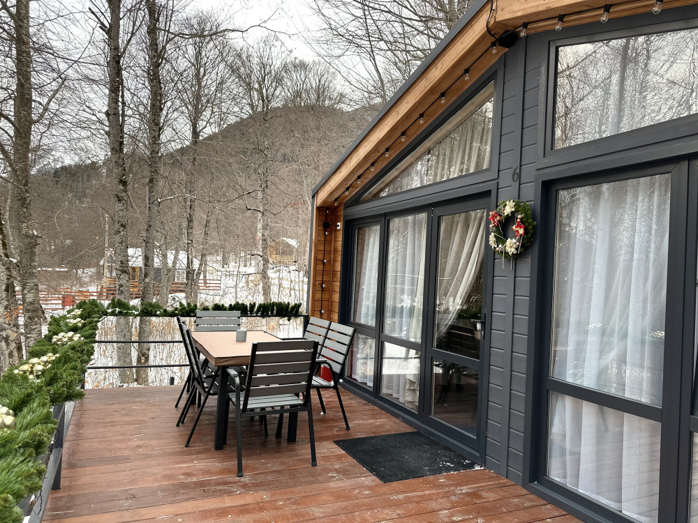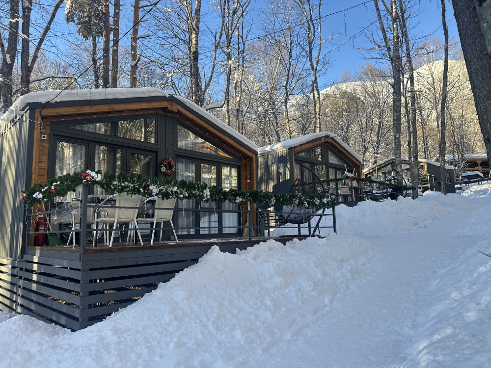База отдыха «Шёпот леса» в с. Архыз предлагает домики с видом на горы и лес: