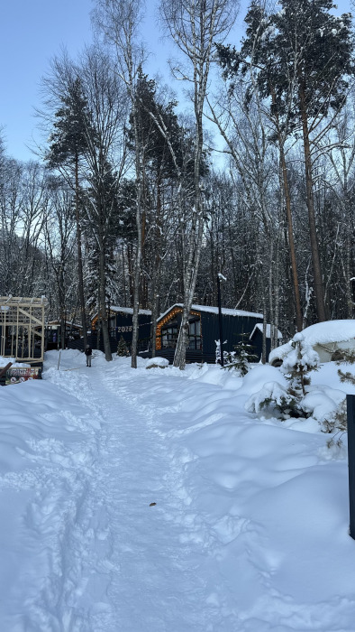 - Прекрасный вид на заснеженные горы зимой и густой зелёный лес летом.