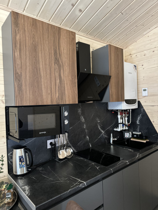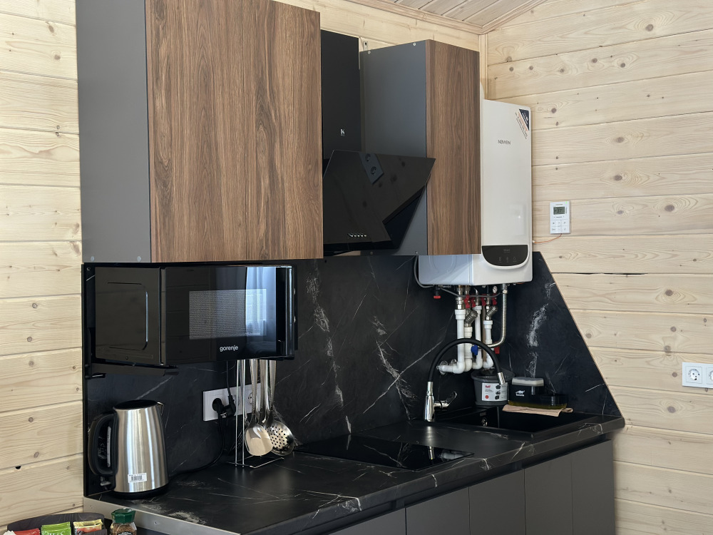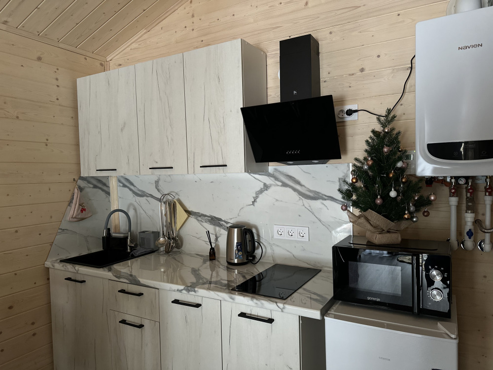 - Кухня-гостиная укомплектована всей необходимой техникой и посудой, есть двуспальный