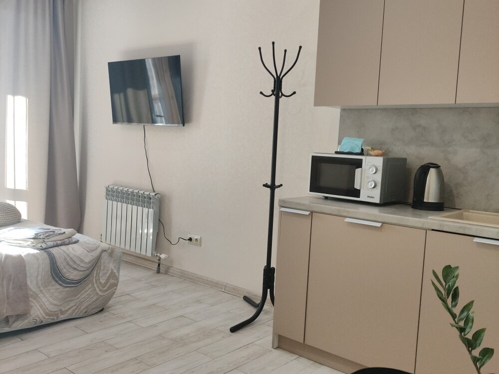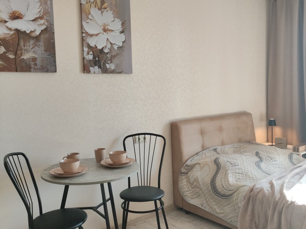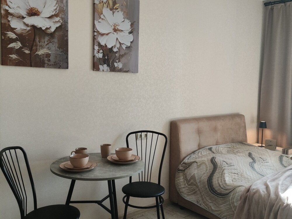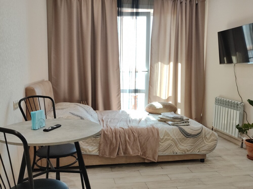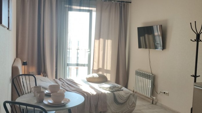 Уютная квартира-студия в Октябрьском районе города Иркутска, с дизайнерскими ремонтом. В квартире все необходимое для проживания. В шаговой доступности остановка общественного транспорта «Лисиха», Сбербанк, Россельхозбанк, ресторан китайской кухни, супермаркет, аптека и т.д. До центра города 7 минут на автобусе; до аэропорта 6 минут.