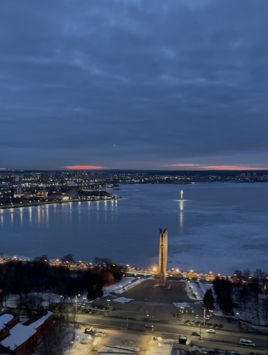 Номер в Пентхаусе на 22 этаже, вид на Ижевский пруд (самый большой пруд Европы), на город, на Стеллу, самый центровой и роскошный вид в городе Ижевске. Ночной город, когда зажигаются огни, можно смотреть не отрываясь (Пальма-де-Майорка отдыхает). Стоит побывать в таком месте однозначно, и увидеть всю красоту Ижевска.
