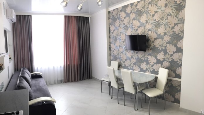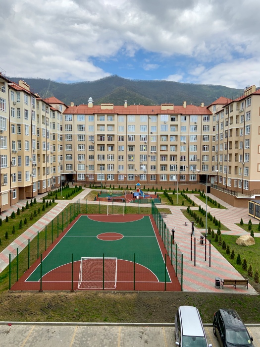 Квартира расположена в 10 минутах ходьбы до моря и набережной. Рядом детские площадки, стоянка, магазины, остановка общественного транспорта, до центра 3 остановки.