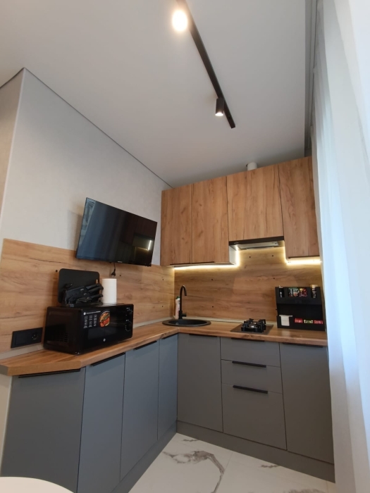 Двуспальная кровать телевизор, Wi-Fi, полностью оборудованная кухня: плита, чайник, холодильник, вся необходимая посуда и принадлежности. Стиральная машина, утюг, фен. Чистое постельное бельё.