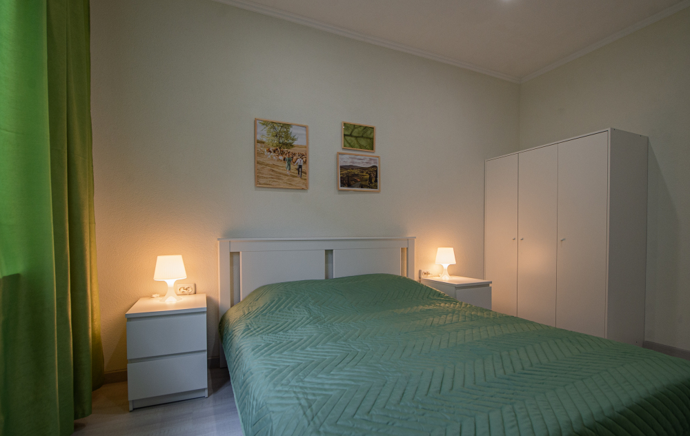 • 1 двуспальная кровать, 2 односпальных кровати, 1 диван-кровать, детская кроватка (по запросу)