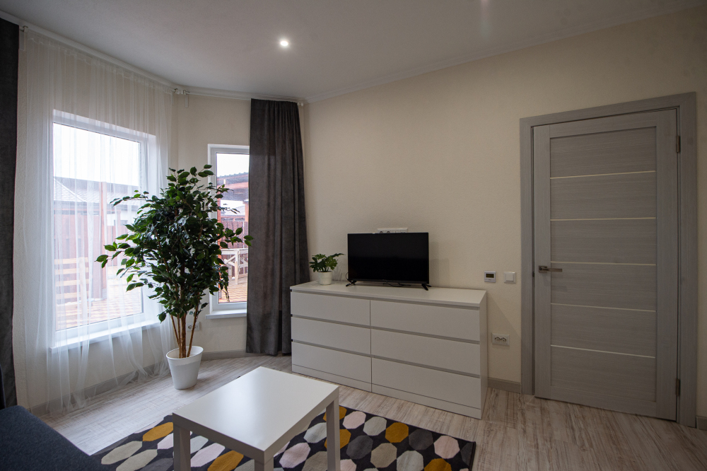 В доме есть все необходимое как для короткого, так и для длительного проживания (посуда, столовые приборы, техника, постель).
