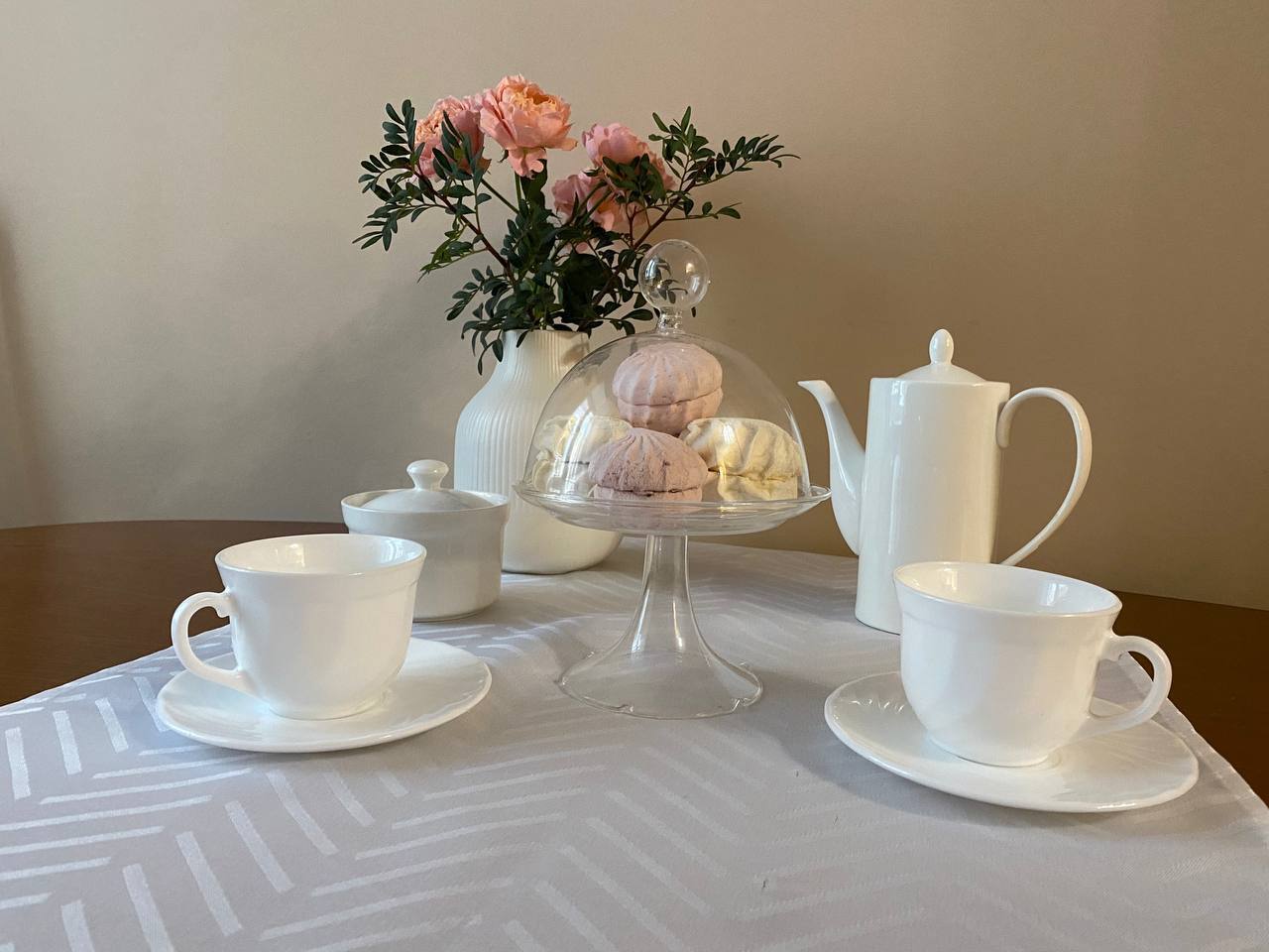 Кухня обустроена всем необходимым: духовой шкаф, чайник, фильтр для воды, капельная кофеварка, набор посуды для приготовления и сервировки.
