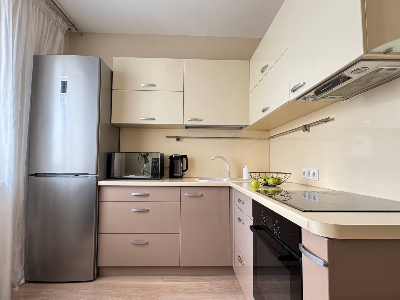 В квартире предусмотрено всё для комфортного проживания. Удобная двуспальная кровать и дополнительное спальное место на кресле-кровати подойдут для комфортного отдыха семьи. Отдельная полностью оборудованная кухня оснащена всем необходимым для приготовления и сервировки блюд. Совмещённый санузел с ванной, все предметы личной гигиены уже ждут Вас. На большой лоджии обустроено стильное место для утренних и вечерних посиделок, а вид на город создаёт приятную атмосферу для отдыха или работы.