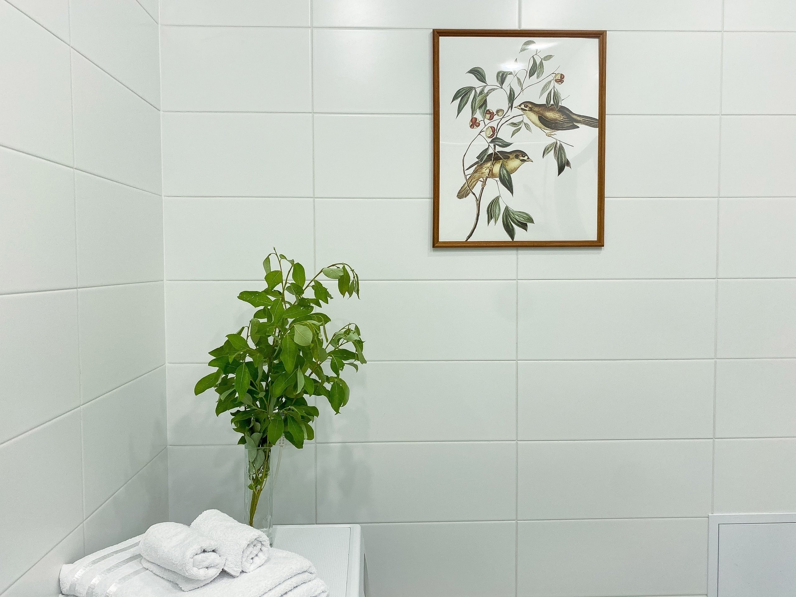 В ванной комнате удобная ванная, стиральная машина и необходимые предметы гигиены.