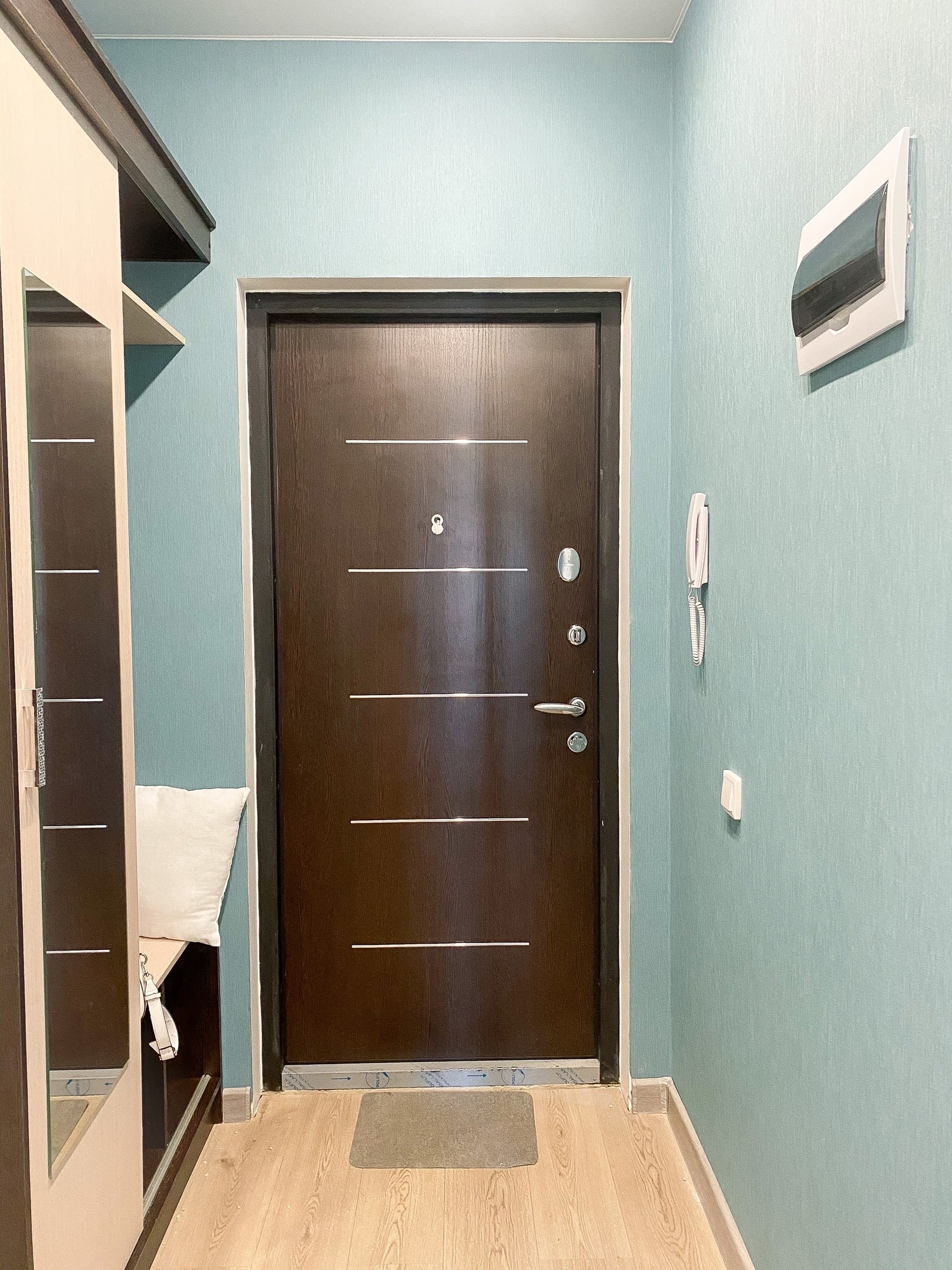 В квартире имеется вместительный шкаф-гардеробная. Здесь Вы найдете утюг, гладильную доску и сушилку.