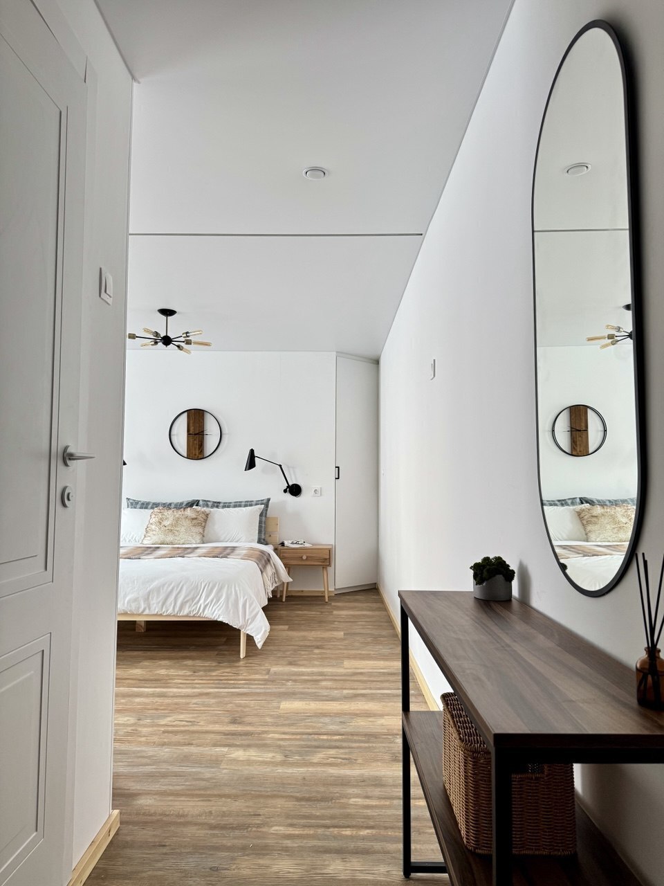 Просторная спальня с двуспальной кроватью обеспечит вам спокойный сон, а раскладной диван позволит разместить еще двоих гостей.