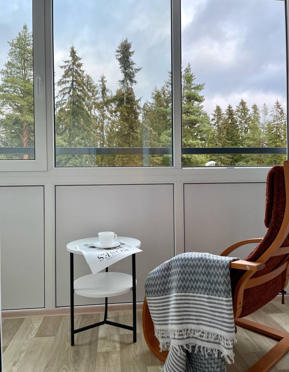 Балкон с креслом - отличное место для утреннего кофе или вечернего отдыха после насыщенного дня.