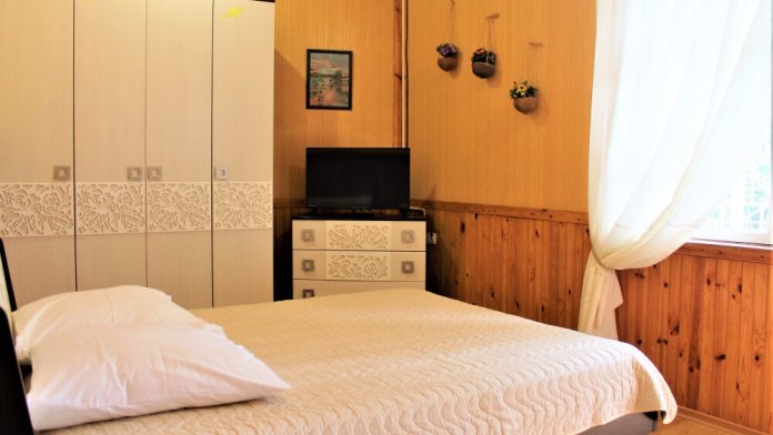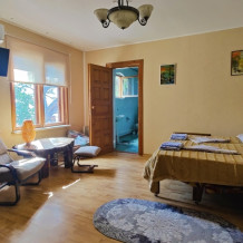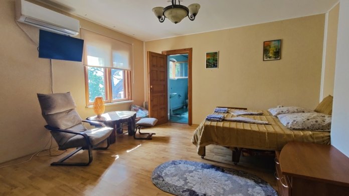 Каждая комната располагает двумя спальными местами, но есть возможность и иных комбинаций. Обе комнаты оснащены кондиционерами, телевизорами. В предбаннике — вместительный холодильник, электрочайник, микроволновая печь, чайный набор посуды. В ванной над раковиной расположено окно, что дарит Вам возможность даже умываться в единении с природой Алупки. Идеальный номер для любителей комфорта и уединения с природой:)