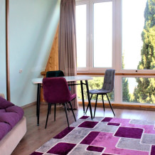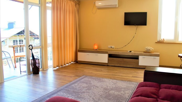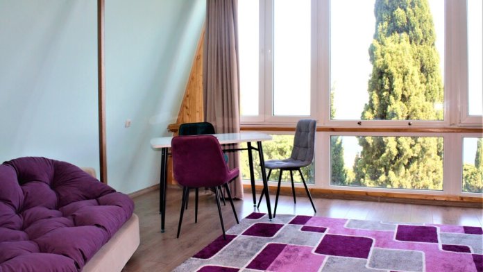 Двухкомнатный трёхместный номер, площадью 41 м.кв. с окнами в пол и видом на море! Светлый просторный номер в буквальном смысле широкими объятиями примет своих гостей! Современный стильный интерьер и внимание к деталям, создающим комфорт, располагают к отдыху круглый год. Кондиционер, тв с доступом в интернет, мощный wi-fi, холодильник, электрочайник, обеденная зона и гостиная, балкон с видом на море. Деревянная мебель ручной работы придаёт интерьеру неповторимый шарм и подчёркивает его эстетичность
