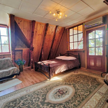 Видовой 2-х комнатный номер мансардного типа, выполнен в дереве в стиле кантри с современным интерьером, удобным для отдыха видовым балконом с плетеной мебелью, утопающий в зелени кипарисов и в цветах магнолии. Раздельные комнаты – гостиная и спальня оформлены с изысканным вкусом.