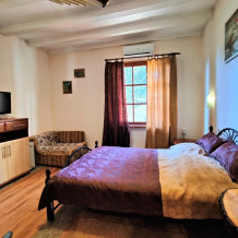 Большой и комфортный семейный номер, общей площадью 50 м.кв., расположен на втором этаже, рассчитан на 4 гостей с возможностью дополнительного места (за доп.оплату). Комнаты смежные, оформлены в уникальном рустик стиле.