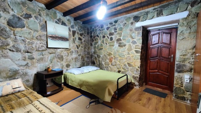 Этот номер экзотик уникален, выполненный в камне местного происхождения. Расположен на первом этаже возле бассейна, общей площадью 30 м.кв., рассчитан на одного-двоих гостей. В жаркий зной Вас удовлетворит приятная прохлада, поддерживаемая природными материалами, без помощи кондиционера.