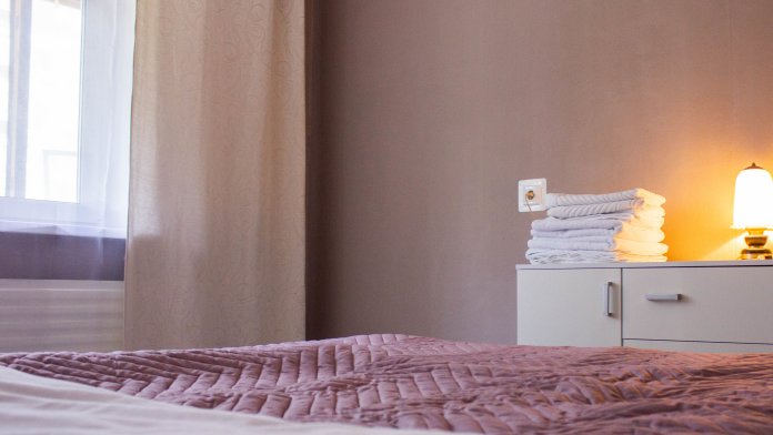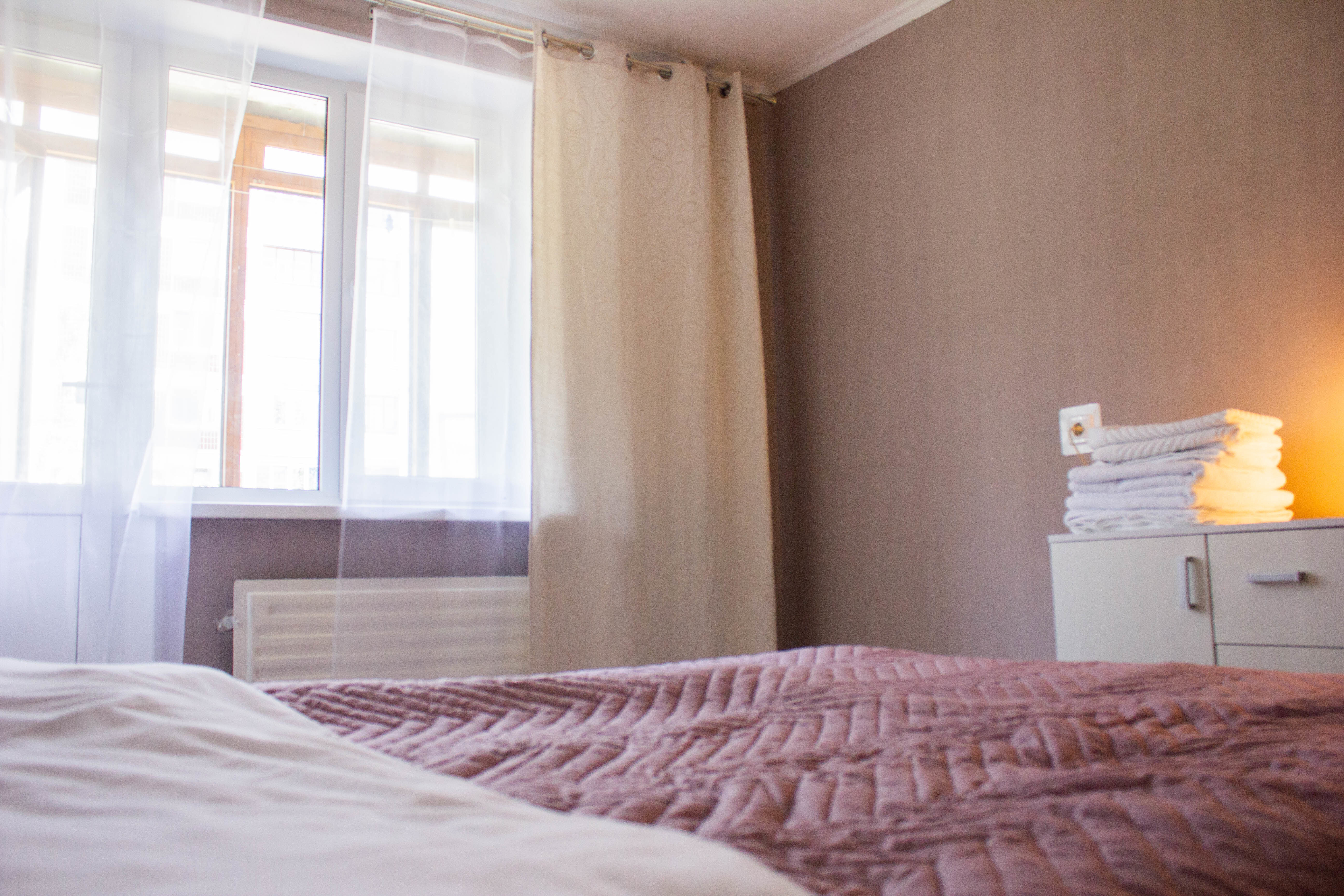 В квартире спальня с двуспальной кроватью, в гостиной двуспальный диван и раскладная кровать.