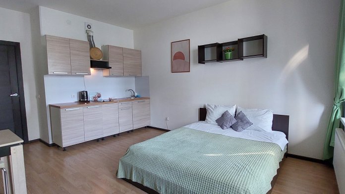 Просторная студия, где всё предусмотрено для комфортного отдыха.