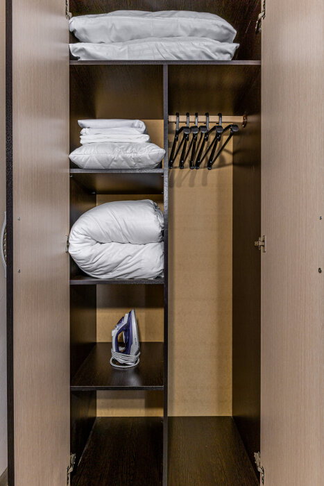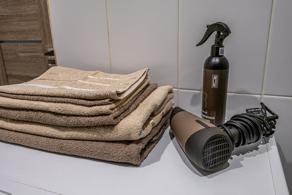 - Душевая кабина + свежие полотенца, фен, утюг, водонагреватель.