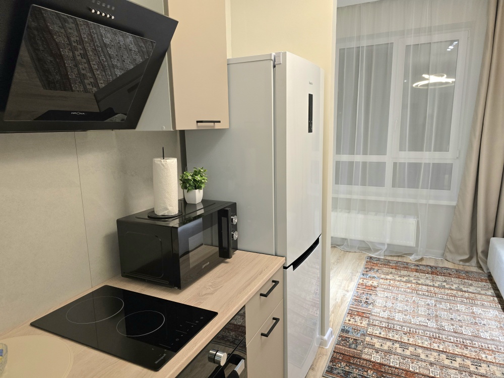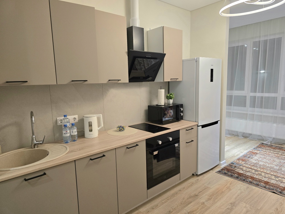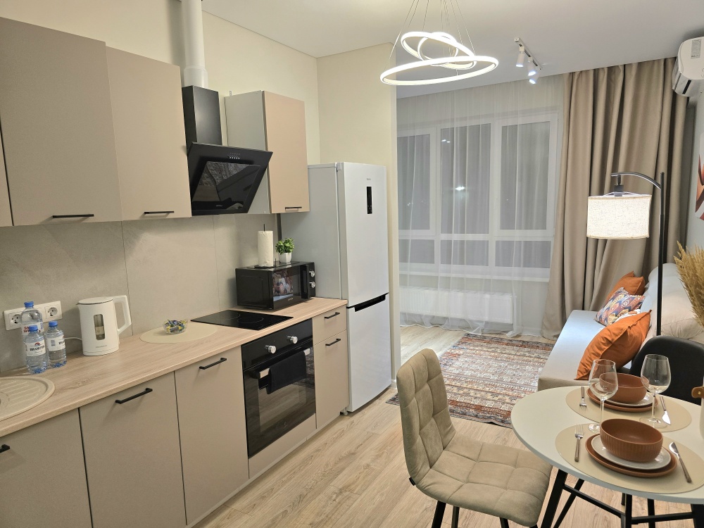 - Современная техника: Всё новое (холодильник, электроплита, СВЧ, чайник, стиральная машинка, кондиционер, Wi-Fi, Smart-TV).
