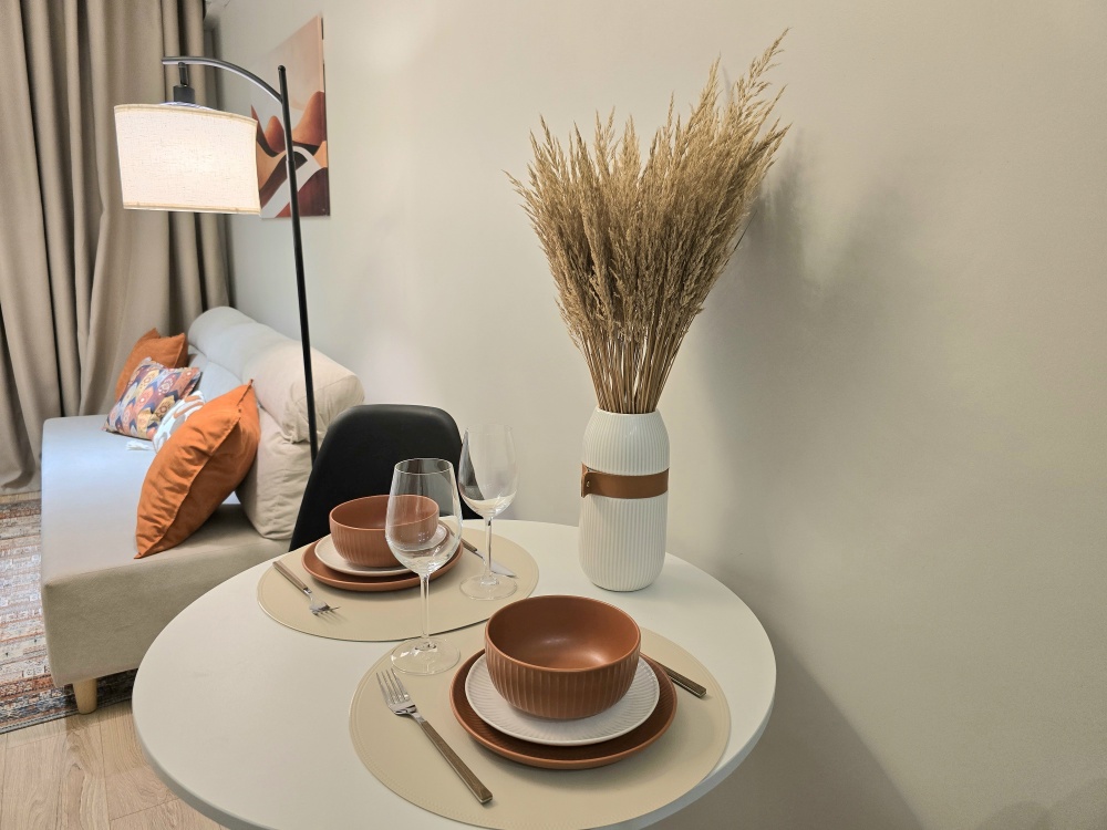 - Солнечный интерьер: Светлые стены, яркие акценты в декоре и много естественного света создают по-настоящему праздничное настроение!