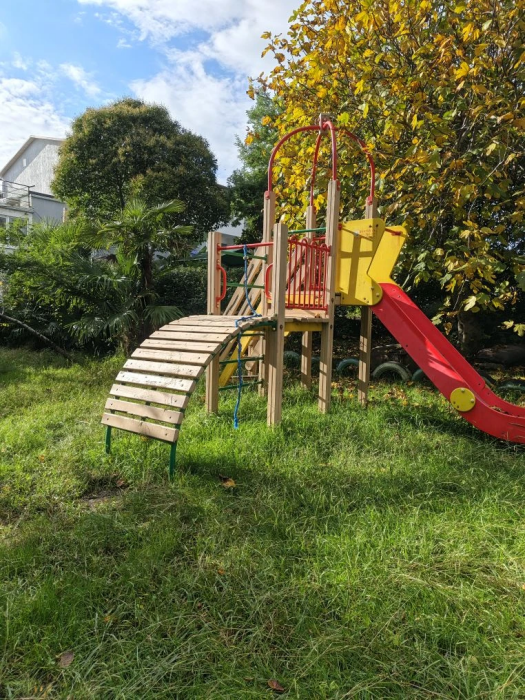 В доме есть терраса (веранда), расположенная на 4 этаже, площадка для пикника, интернет wi-fi, общая кухня для самостоятельного приготовления пищи, которая находится на 1 этажах дома. Во дворе имеется детская площадка и площадка с тренажёром и теннисным столом.