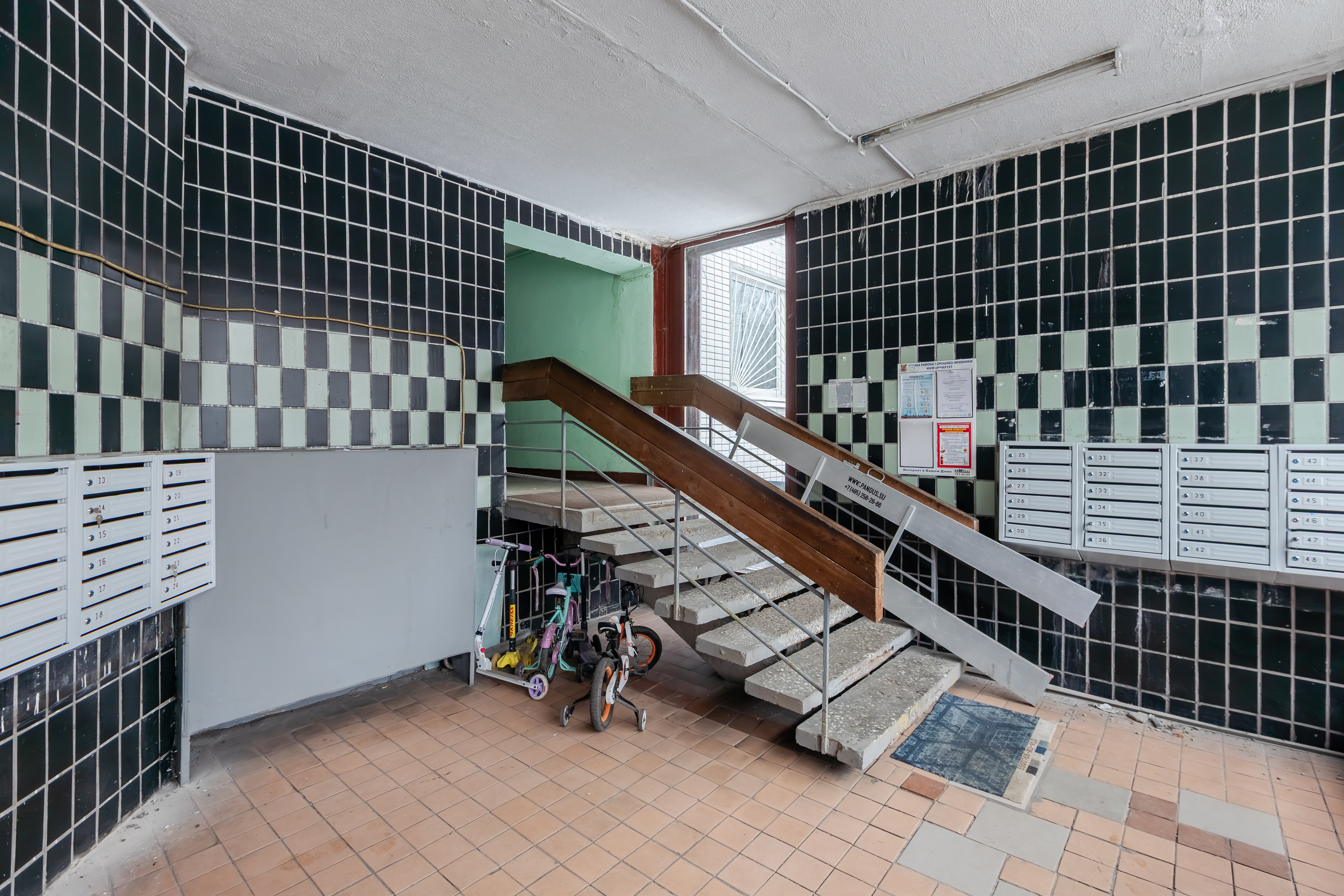 - Расположена в 5 минутах пешком от метро «Народное Ополчение»;